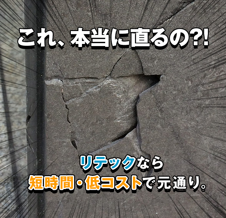 施工環境がわかる全体写真と破損箇所のアップ写真を複数枚お送り頂くと、やりとりがスムーズになります。